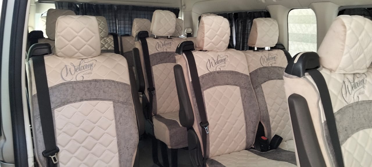 نوفر لكم ميكروباصات تويوتا هاي اس (13 فرد) وسيارات كوستر (21 فرد) بموديلات حديثة جداً. تتميز السيارات بتكييف مركزي قوي جداً (ثلاجة) ليتناسب مع أجواء الصيف، بالإضافة إلى مقاعد جلدية مريحة وواسعة تناسب الرحلات الطويلة.